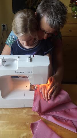 Jag kommer ihåg hur min mormor satt och sydde i timmar med mig när jag var liten. Kjolar, byxor, klänningar och allt möjligt. Så många fina minnen! Det var nästan att jag fick en tår i ögat av nostalgi (och enorm saknad) när jag såg min egen dotter sitta på samma sätt nu. Jag hoppas att det sätter sig som lika kära minnen hos henne som de jag har med min älskade mormor.