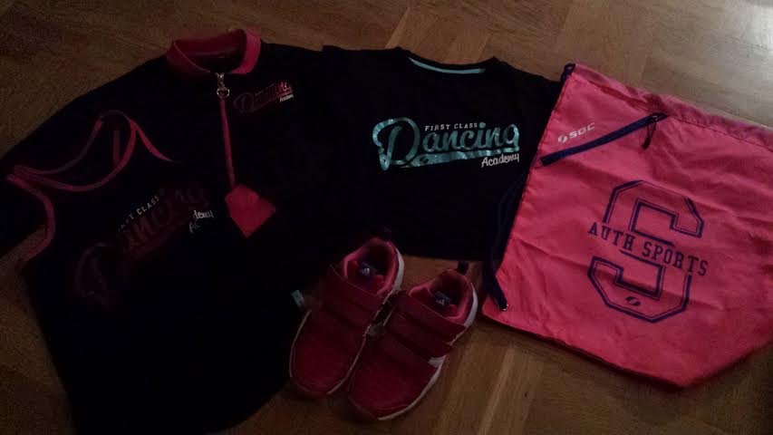 Alva har väldigt klart för sig vad hon tänker ha på sig och inte. Mycket riktigt visste hon även nu precis vad hon ville ha. Ett linne, en t-shirt och en överdragströja att ha på innan hon blev varm. Träningsbyxor har hon sedan tidigare, de var det enda som passade. Tämligen omgående hittade vi alltihop och hör och häpna, det såg ut precis som barnet hade tänkt sig. Träningspåse som dög fanns det med. Enda smolken i bägaren var att överdragströjan satt ihop som ett set med ett par byxor som hon varken ville ha eller behövde. Det kändes lite onödigt, men inget att göra något åt.